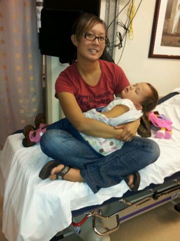 At the hospital with my sick baby. Even at 3 years old, when I saw her so vulnerable and ill, I felt like I was taking care of her as a newborn all over again.